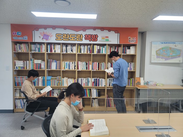 풍납동 도시재생 현장지원센터(풍성로28)는 풍납동 토성 일대 도시재생사업을 시행하면서 주민 의견을 반영하고 주민 참여를 이끌어 내기 위해 설치한 시설이다. 지난 9월 1일 이곳에 조성된 ‘도란도란 책방’은 풍납2동 주민센터에 있던 새마을문고가 주민센터 신축공사로 일시 폐쇄되어 구가 마련한 것이다.