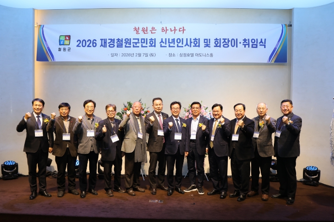 [코리아 이슈저널=최제구 기자] 철원군은 2월 7일 오후 6시 서울 삼정호텔에서 열린 '2026년 재경철원군민회 이취임식 및 신년인사회'에 참석해 재경철원군민회의 새 출발을 축하하고, 철원군과 수도권 향우 간 상생 협력 강화 의지를 밝혔다.