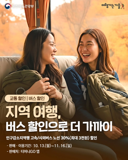 문화체육관광부, 지역여행, 버스 할인으로 더 가까이