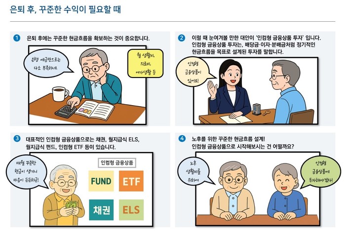 가이드에서는 시니어 투자자들이 주목할 만한 상품으로 채권, 월지급식 ELS, 월지급식 펀드, 인컴형 ETF를 중심으로 상품 구조·수익 방식·위험 요소를 상세히 설명했다.
