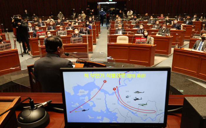 더불어민주당 김병주 의원이 지난달 합참에서 보고한 비행궤적을 토대로 종로·동대문·광진·남산 일대까지 무인기의 침범 가능성을 제기한 것과 관련, 여권이 '북한 내통설'을 제기한데 대한 입장도 밝혔다.
