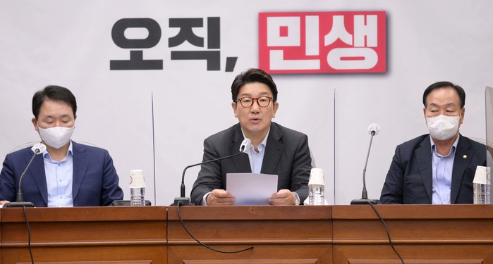| ▲ 국민의힘 권성동 당 대표 직무대행 겸 원내대표가 26일 오전 서울 여의도 국회에서 열린 원내대책회의에서 발언하고 있다. 2022.7.26 [국회사진기자단] |