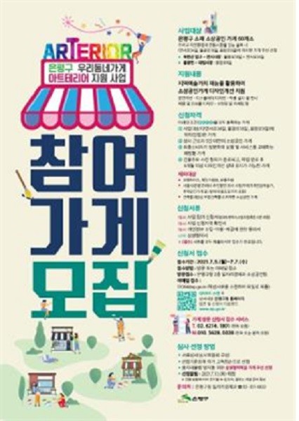 올해 사업은 은평구 자연과 전통시장을 연결하는 골목 내(불광로18길, 연서로34길, 응암로9길)에 위치한 매장형 가게를 대상으로 하며, 은평구에서 둥지내몰림방지대책으로 추진하고 있는 상가건물 임대인과 임차인간 공정하고 지속 가능한 임대차 관계를 형성하기 위한 “상생협약”을 체결하는 가게를 우선 선정할 계획이다.