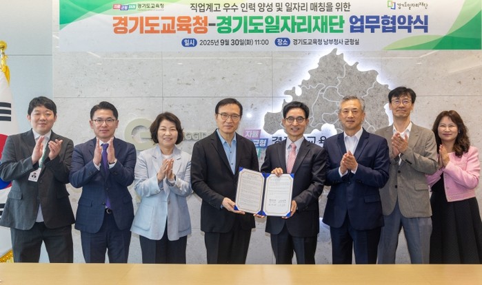 [코리아 이슈저널=홍춘표 기자] 경기도교육청이 30일 남부청사에서 경기도일자리재단과 도내 직업계고 학생의 성공적 사회 진출 및 일자리 창출을 위한 업무 협약을 체결했다.
