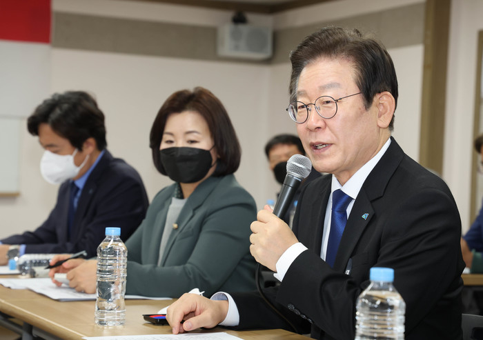 | ▲ 더불어민주당 이재명 대표가 15일 서울시 중구 정동 민주노총을 방문, 인사말을 하고 있다. 2022.11.15 |