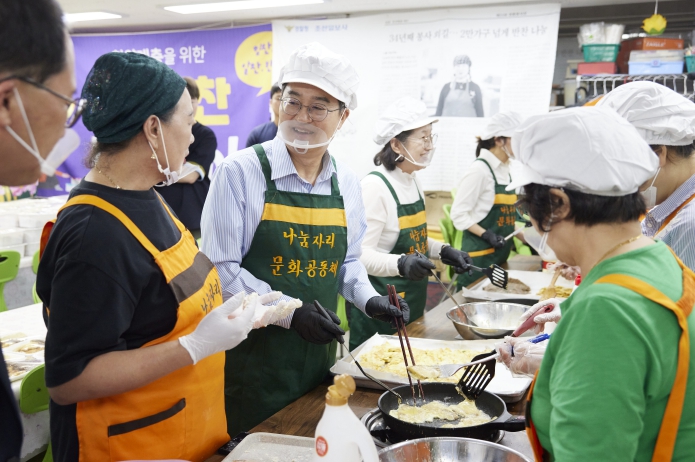 [코리아 이슈저널=홍춘표 기자] 현장에서 도정 현안을 점검하고 도민들의 목소리를 직접 듣는 민생경제 현장투어에 나선 김동연 경기도지사가 29일 시흥시를 찾아 추석맞이 반찬 나눔 봉사활동을 진행했다.