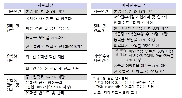 - 외국인 유학생의 선발·체류 관리 실태에 대한 현장점검 및 부실 대학 엄정 조치