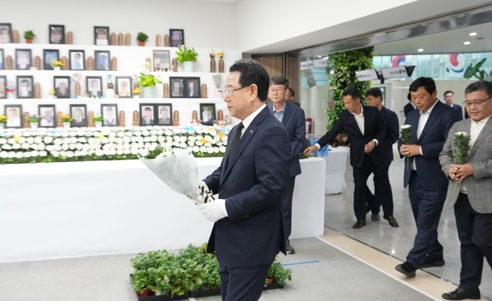 [코리아 이슈저널=김종오 기자] 김영록 전라남도지사는 추석을 앞둔 3일 제주항공 여객기 사고 희생자 무안공항 합동분향소를 찾아 헌화·분향하며 희생된 분들의 넋을 기렸다.