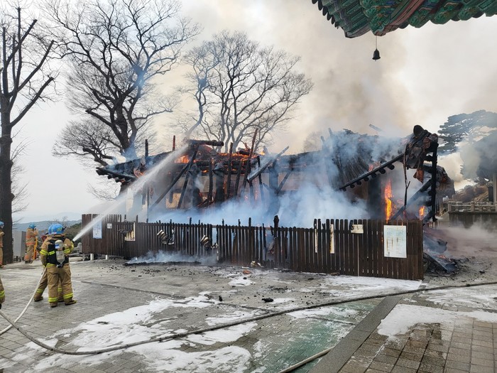 [열린의정뉴스 = 김태훈 기자] 17일 오후 경기도 안양시 만안구 석수동 관악산 내 사찰 삼막사에서 불이 났다.