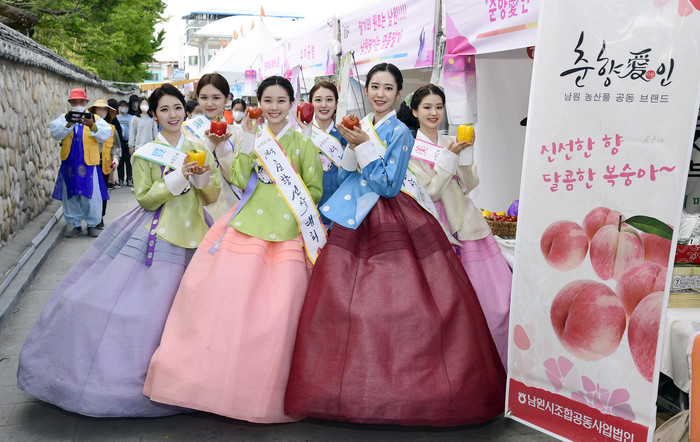 이들은 지난 4일 열린 춘향선발대회에서 대한민국 최고의 전통 미인으로 뽑힌 뒤 남원시 홍보대사가 됐다. 앞으로 3년간 남원의 관광, 축제, 농·특산품 등을 널리 알리는 역할을 한다. 2022.5.6