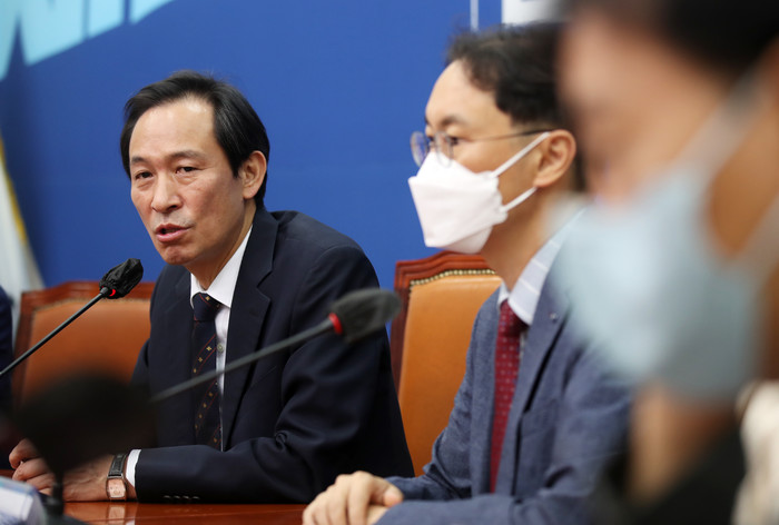 | ▲ 더불어민주당 우상호 비상대책위원장이 25일 오후 서울 여의도 국회 당대표 회의실에서 새로고침위원회 활동 결과보고 기자회견을 하고 있다. 2022.8.25 [국회사진기자단] |