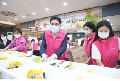 한가위 복주머니는 지난 28일 방역수칙 준수 하에 각 세대별 비대면 문전 배부 방식으로 전달됐으며, 음식의 신선도 유지를 위해 성내종합사회복지관 직원과 자원봉사자들이 권역별로 배송팀을 꾸려 신속하고 안전하게 전달됐다.