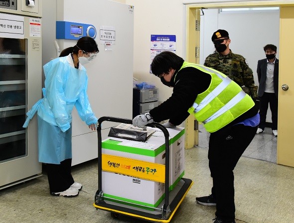 국립중앙의료원에서 출발하여 군·경의 협조 아래 도착한 백신은 보건소 담당자가 수량과 상태 등을 꼼꼼히 확인한 후 영하 90〬C~65〬C로 유지되는 초저온 냉동고에 안전하게 보관했다.
