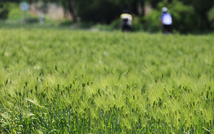 [열린의정뉴스 = 김윤영 기자] 6일 오후 경기도 성남시 탄천에서 자전거를 탄 시민들이 초록으로 물든 청보리밭 옆을 지나고 있다. 2022.5.6