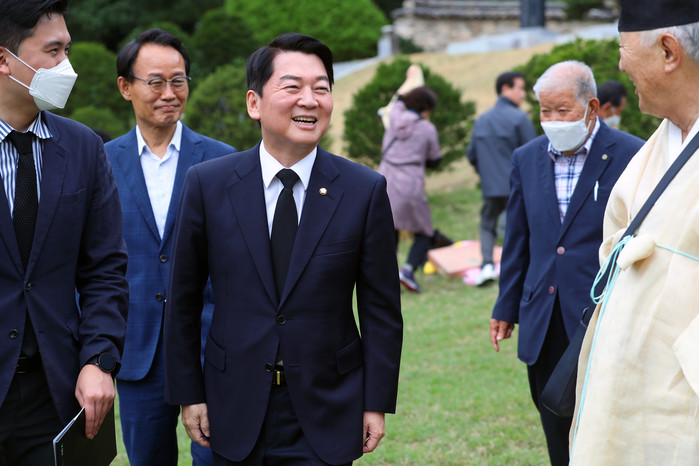 참배를 마친 뒤 안 의원은 기자들에게 "경북 영주가 제 뿌리다. 여기가 선영이 있는 곳이어서 정말 중요한 일이 있을 때마다 또 국가적으로 여러 고비가 있을 때마다 찾아뵙고 제 마음을 다지고 있는 곳"이라며 방문 이유를 설명했다.