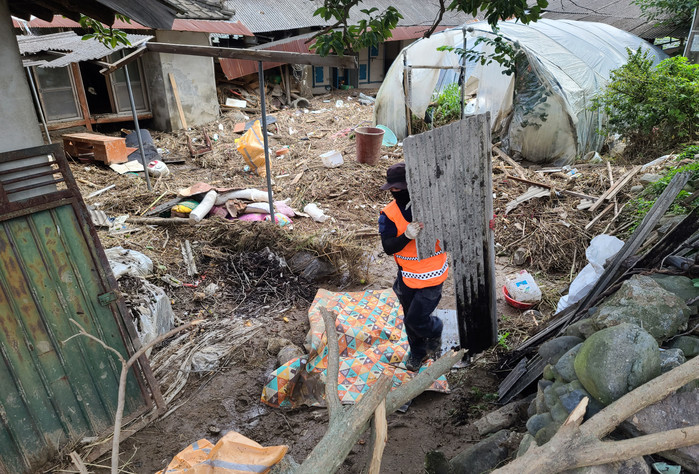 [열린의정뉴스 = 김윤영 기자] 소방청 소속 소방공무원들이 17일 집중호우로 피해가 발생한 충남 부여군을 찾아 수해복구 지원활동을 펼치고 있다. 2022.8.17 [소방청 제공. 재판매 및 DB 금지]