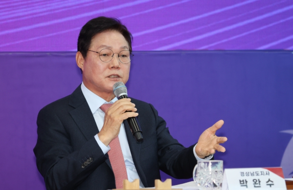 [코리아 이슈저널=김태훈 기자] 박완수 도지사가 18일 거제 반다비체육센터에서 열린 ‘도민 상생토크’에서 기업혁신파크, 광역교통망, 미래산업 등을 연계한 성장전략을 제시하며 “거제가 남해안 관광휴양과 미래산업의 핵심축으로 도약할 수 있도록 경남도가 적극 뒷받침하겠다”고 밝혔다.
