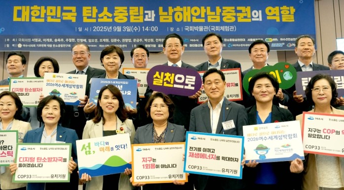 [코리아 이슈저널=김종오 기자] 전라남도는 3일 국회박물관에서 ‘대한민국 탄소중립과 남해안 남중권 역할’이라는 주제로 국회포럼이 열려 탄소중립과 유엔기후변화협약 당사국총회(COP33) 유치 의지를 다졌다고 밝혔다.