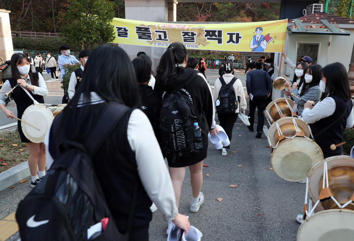 이 학교에서 수능 장도식이 열린 건 코로나19 여파로 대면 모임이 제한된 이후 3년만이다. 2022.11.11