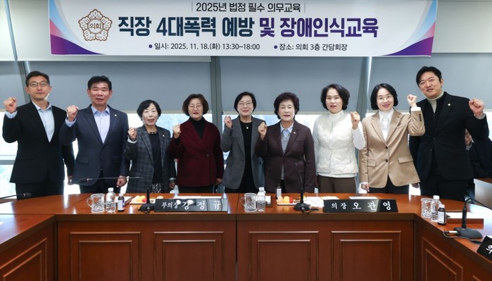 오관영 의장은 “이번 4대 폭력 예방 교육과 장애인 인식 개선 교육이 의회 구성원들이 보다 성숙한 조직 문화를 만들어가는 데 중요한 계기가 될 것”이라며 “서로를 존중하고 차별과 폭력이 없는 건강한 직장 문화가 더욱 확산되길 바란다”고 말했다.