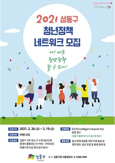 [열린의정뉴스 = 최제구 기자] 서울 성동구(구청장 정원오)는 오는 3월 19일까지 청년 문제를 해결하기 위해 청년의 목소리를 반영한 의제를 발굴하고 정책을 제안하는 “성동구 청년정책네트워크” 2기 위원을 모집한다.