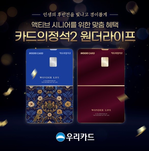 우리카드가 5060세대를 겨냥한 맞춤형 브랜드 ‘우리 원더라이프’에 맞춰 ‘카드의정석2 원더라이프’ 2종을 3일 출시하며 액티브 시니어 고객층 공략에 나섰다.