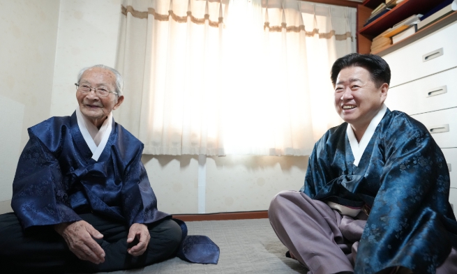 [코리아 이슈저널=김태훈 기자] 오영훈 제주특별자치도지사는 설 명절을 맞아 18일 도내 유일한 생존 독립유공자인 강태선 애국지사의 자택을 방문해 세배하고 새해 인사를 나눴다.