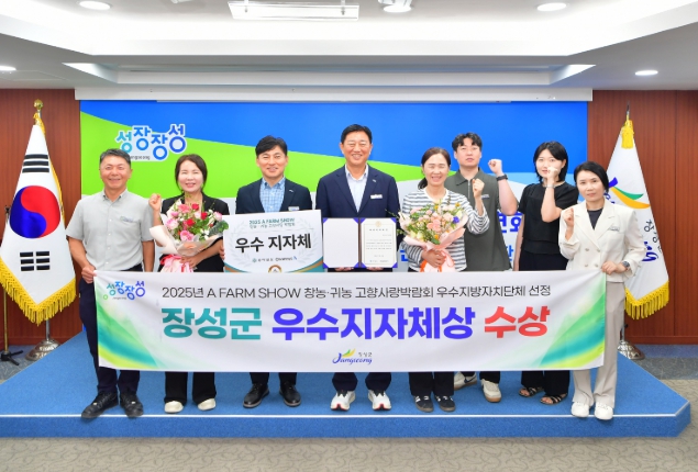 [코리아 이슈저널=김종오 기자] 장성군이 지난 8월 29~31일 서울 ‘에이티(aT)센터’에서 열린 ‘2025년 에이팜쇼(A FARM SHOW) 창농·귀농 고향사랑박람회’에서 ‘우수지자체상’을 수상했다.