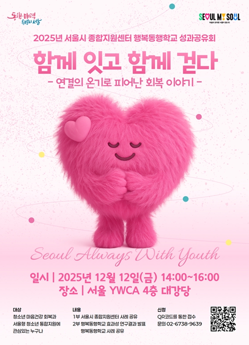 정진우 서울시 평생교육국장은 “앞으로도 청소년 한 명 한 명의 회복 여정을 함께하며, 위기청소년이 다시 일상으로 나아갈 수 있도록 ‘행복동행학교’를 청소년종합지원센터 중심의 위기청소년 회복 모델로 정착시키고, 권역별 특성을 반영한 프로그램 확대와 함께 보다 촘촘한 지역 연계 지원체계를 구축해 나가겠다”고 말했다.
