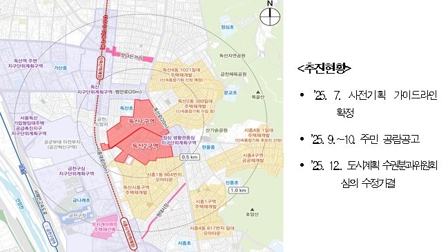 [코리아 이슈저널=최준석 기자] 서울시는 2025년 12월 24일 '제14차 도시계획위원회 신속통합기획 정비사업 등 수권분과위원회'를 개최하여 ‘독산동 1036일대(독산1구역)’과 ‘독산동 1072 일대(독산2구역)’ 주택정비형 재개발사업 정비구역 지정 및 정비계획 결정(안)을 '수정가결' 했다고 밝혔다.