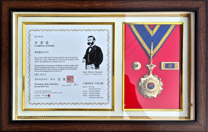 [코리아 이슈저널=최용달 기자] 양양홀딩스(주)의 현희용 회장이 지난 10월 27일, 대한적십자사로부터 포장증을 수상하며 지역사회와 인류애를 위한 지속적인 헌신을 인정받았다.