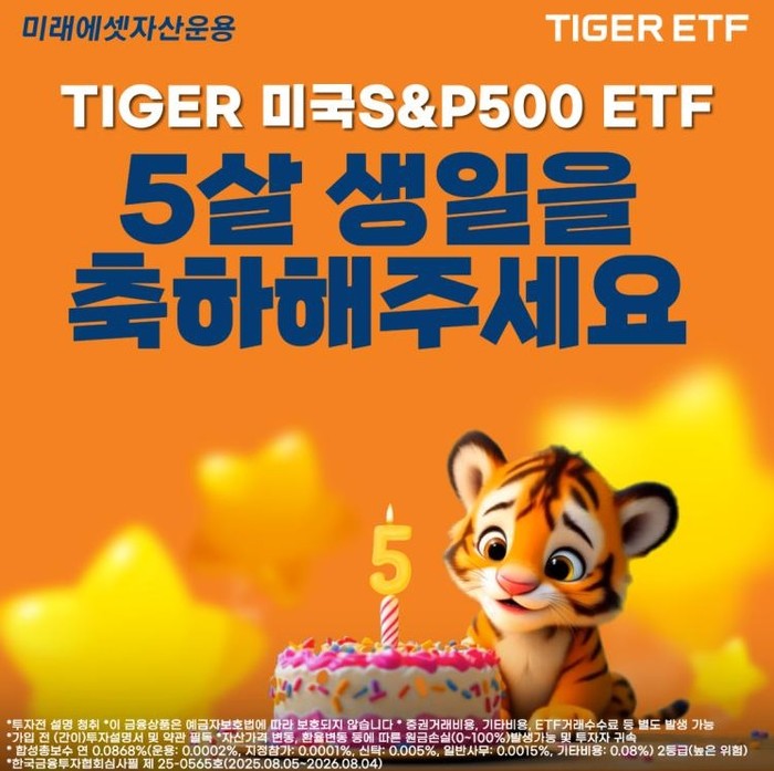 [코리아 이슈저널 = 이창환 기자] 미래에셋자산운용은 자사 대표 상장지수펀드(ETF)인 ‘TIGER 미국S&P500 ETF’가 상장 5주년을 맞이했다고 7일 밝혔다. 2020년 8월 7일 국내 최초로 출시된 미국 S&P500 현물형 ETF인 이 상품은, 현재까지 개인 투자자 누적 순매수 4조3591억 원을 기록하며 ‘국민 대표 ETF’로 자리 잡았다.