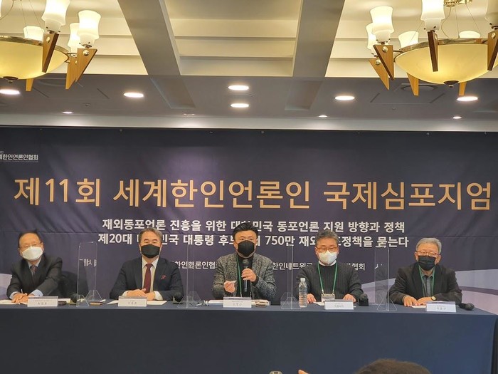 이날 앞서 진행된 '재외동포 언론 진흥 방향' 주제 발표에서 여익환 세계한인언론인협회 사무총장은 "신종 코로나바이러스 감염증(코로나19) 팬데믹으로 세계 360여 개 한인 언론사가 경영난으로 절규하고 있다"며 "한국 정부는 차세대 한민족 정체성 확립을 위해 활동하는 한인 언론인 지원에 적극적으로 나서고, 궁극적으로 '재외동포언론진흥원'(가칭)을 설립해 달라"고 요청했다.