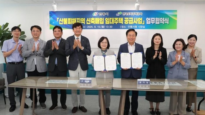 LH는 지난 15일 안동시와 업무협약을 체결하고, 산불피해지역에 신축매입 임대주택 80호를 시범 공급하기로 했다. 주택 건설 및 매입 비용은 LH가 부담하며, 임대 운영은 안동시가 맡는다. 협약식에는 조경숙 LH 주거복지본부장과 권기창 안동시장이 참석해 이재민의 주거 회복 지원에 뜻을 모았다.