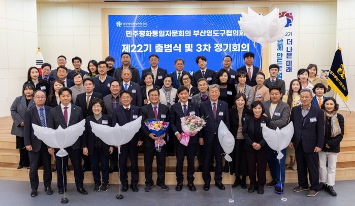 [코리아 이슈저널=김태훈 기자] 민주평화통일자문회의 부산영도구협의회(협의회장 김창석)는 지난 11월 26일 영도구청 대강당에서 ‘제22기 출범식 및 2025년 3차 정기회의'를 개최했다. 이날 행사에는 민주평통 박사익 부산부의장, 김기재 영도구청장, 최찬훈 영도구의회 의장, 자문위원, 초청내빈 등 100여 명이 참석했다.