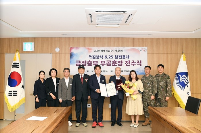 [코리아 이슈저널=김태훈 기자] 부산 동래구는 지난 13일 6․25전쟁에 참전해 무공을 세운 고(故) 김상식님의 자녀 김형원씨에게 금성충무 무공훈장과 훈장증을 전수했다.