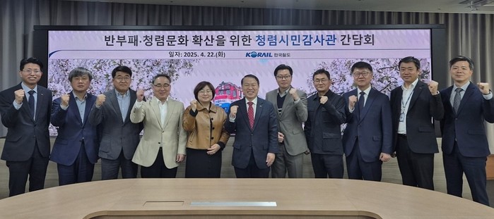 [코리아 이슈저널 = 이창환 기자] 한국철도공사(코레일, 사장 한문희)는 22일 대전 본사에서 ‘청렴시민감사관’과 함께 반부패‧청렴문화 확산을 위한 간담회를 열고, 청렴 정책의 실효성을 높이기 위한 다양한 의견을 나눴다.
