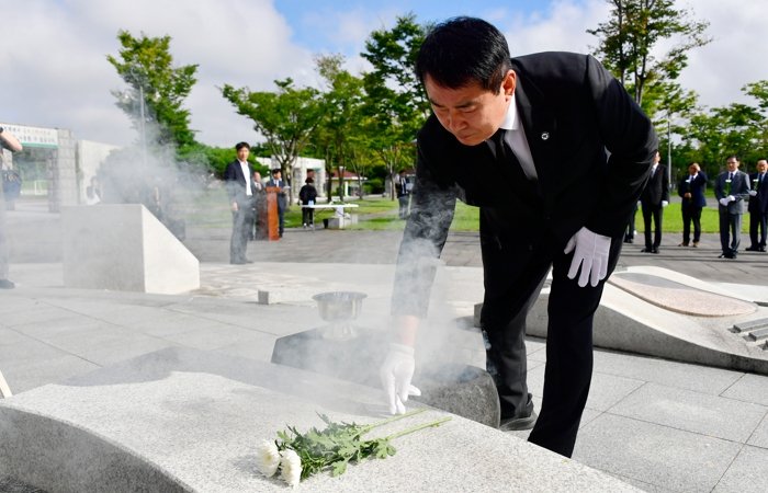 [코리아 이슈저널=김종오 기자] 이정선 광주시교육감은 15일 광복80주년을 맞아 상무시민공원 광주독립운동기념탑을 참배했다.
