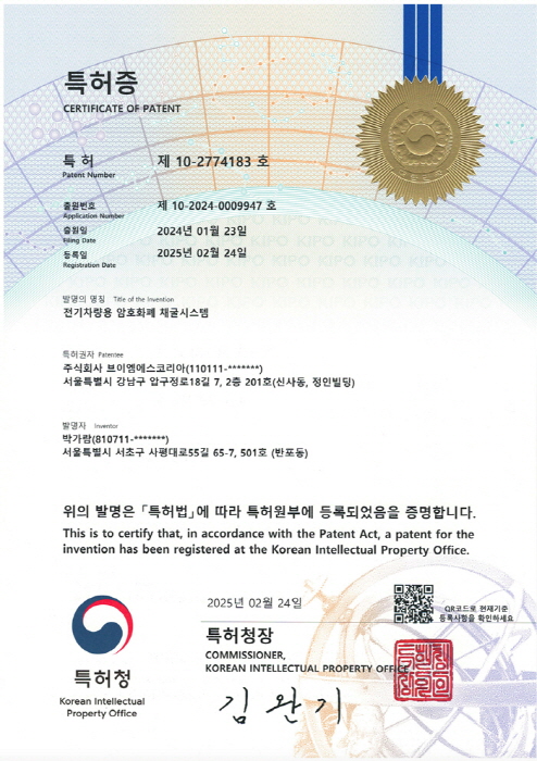 | ▲ 전기차량용 암호화폐 채굴시스템 특허증 |