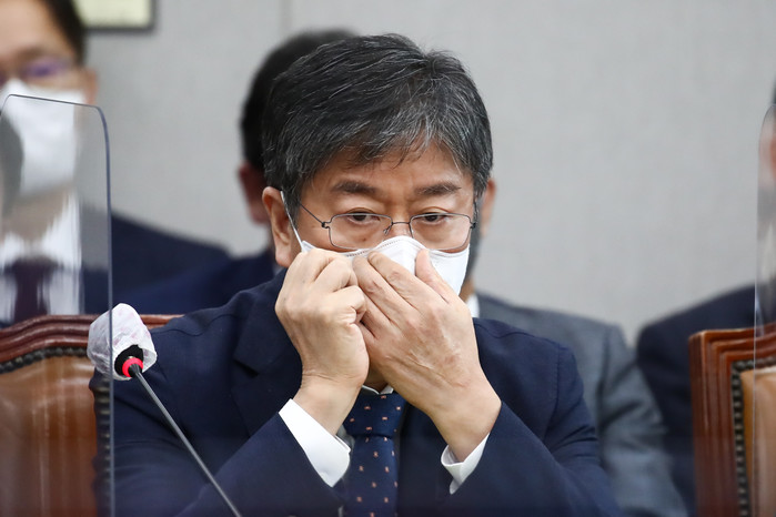 ▲ 김대기 대통령 비서실장이 23일 오후 국회에서 열린 운영위원회 전체회의에서 마스크를 만지고 있다. 2022.8.23 [국회사진기자단]