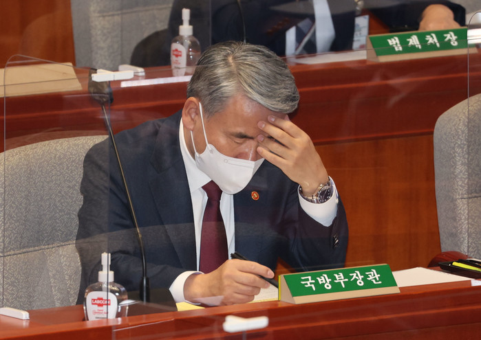 | ▲ 이종섭 국방부 장관이 14일 서울 여의도 국회에서 열린 예산결산특별위원회 전체회의에서 자료를 살펴보고 있다. 2022.11.14 |