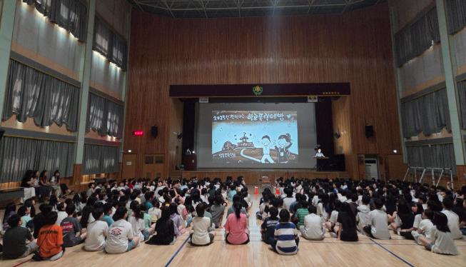 섬세한 모래 그림과 함께 전개된 스토리텔링은 학교폭력의 심각성을 알리고 예방의 필요성을 학생들이 자연스럽게 이해할 수 있도록 도왔다.