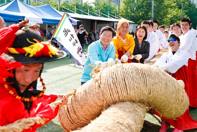 [코리아 이슈저널=김윤영 기자] 용인특례시는 14일 오후 수지구 상현레스피아에서 ‘2025년 독바위 민속줄다리기 한마음 축제’와 ‘상현3동 동민의 날’ 행사가 이상일 시장과 시민 1000여명이 참석한 가운데 성황리에 열렸다고 15일 밝혔다.