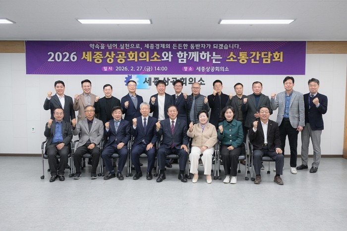 [코리아 이슈저널=최용달 기자] 세종특별자치시가 27일 세종상공회의소에서 지역 기업인과 ‘2026 세종상공회의소와 함께하는 소통간담회’를 개최했다.