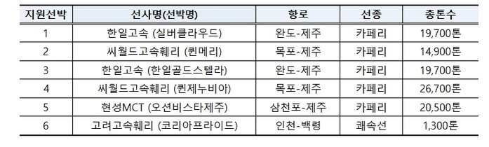 당초 펀드 지원 대상은 연안여객선이었으나, 연안여객업계와 연안화물업계의 형평성을 고려하여 2024년도부터 지원 대상을 연안화물선까지 확대했다. 그 결과 올해까지 조성된 2,490억 원의 펀드 자금으로 총 11척을 지원하고 있으며, 그 중 실버클라우드(제주-완도), 퀸제누비아(목포-제주) 등 6척의 연안여객선은 건조가 완료되어 항로에 투입되고 있다.