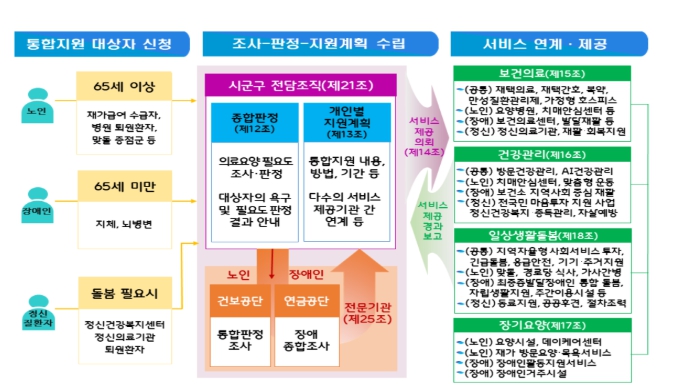의료‧요양 통합돌봄은 일상생활에 어려움을 겪는 사람이 살던 곳에서 건강한 생활을 영위할 수 있도록 시‧군‧구가 중심이 되어 돌봄 지원을 통합‧연계하여 제공하는 사업으로, 2024년 3월 26일 관련 법률이 제정되어 2026년 3월 27일 전국적으로 시행될 예정이다.