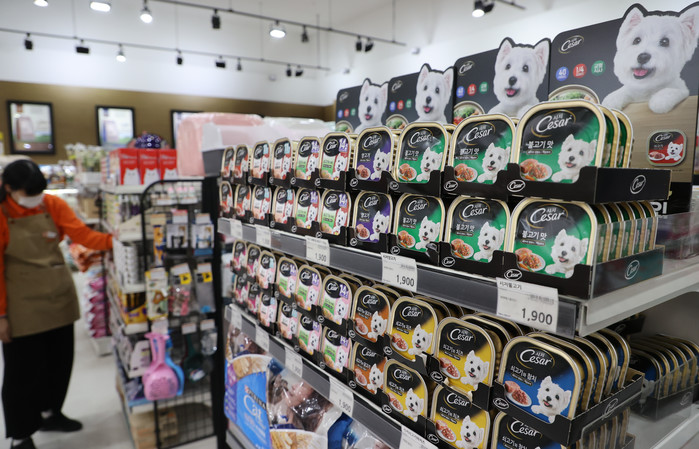 [열린의정뉴스 = 김윤영 기자] 올해 반려동물 관련 용품의 수출과 수입 모두 1년 전보다 급증하며 역대 최대를 기록한 것으로 나타났다. 28일 관세청이 발표한 수출입 현황에 따르면 올해 들어 9월까지 개·고양이 사료와 목끈·의류 등 반려동물용품의 수출액이 1억1천600만달러로 작년 같은 기간보다 56.1% 급증했다. 사진은 이날 서울 시내 대형마트에 반려동물용품 판매대 모습. 2022.10.28