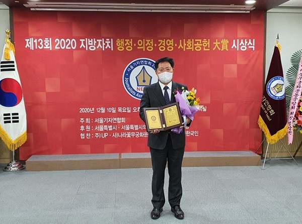 ‘지방자치 행정·의정·경영 사회공헌 대상’ 시상식은 지난 2008년부터 서울기자연합회 주관으로 매년 지방의원의 의정활동을 평가하고 점검해 시민들에게 올바른 기준을 제시하고, 건전한 정치문화를 만들자는 취지로 의정대상 수상자를 선정하고 있다.
