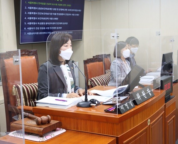 | ▲ 지난 28일 보건복지위원회 제3차 회의를 주재한 이영실 보건복지위원장[출처=서울시의회]