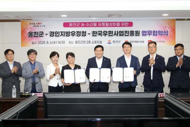 [코리아 이슈저널=홍춘표 기자] 옹진군은 지난 6일, 지역 농어민 소득증대와 농수산물 유통활성화를 위해 경인지방우정청(청장 김꽃마음), 한국우편사업진흥원과 함께 ‘우체국 쇼핑몰 입점을 위한 업무협약(MOU)’을 체결했다고 밝혔다.